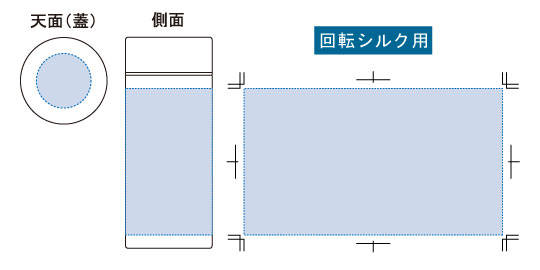 天面に印刷可能、側面は、回転シルク印刷が可能となっております。