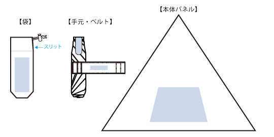 袋/ W50×H110(mm) パネル/ W200×H120(mm) ベルト/ W60×H15(mm)