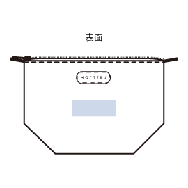サイドのホックを留めると、舟形からスクエア形状に変化するデザインです。